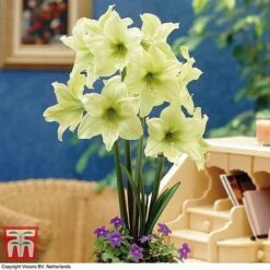 Impressively large, creamy yellow blooms with a hint of green at the centres will make Amaryllis ‘Lemon Star’ an eye-catching addition to your conservatory or window sill. A favourite to grow indoors in many households, amaryllis are renowned for their showy blooms and this variety is no exception!