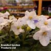 Begonia ‘Soli-Mutata’ forms neat mounds of large, heart-shaped leaves. The olive-green foliage is prettily patterned with contrasting lime green veins and finished off with scarlet edges. The upper leaf surfaces have an invitingly tactile, ‘goose-bumps’ appearance. Sprays of white flowers held well above the leaves are produced intermittently. RHS Award of Garden Merit. Height and spread: 20-30cm (8-12in).