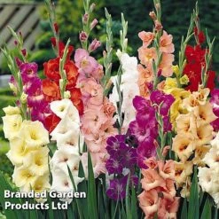 The flamboyant, tall stems of Gladioli are superb for adding height and drama to your garden and used as a cut flower for flower arrangements. This mixed collection is perfect to give your garden a splash of colour all summer long. Just plant the bulbs and forget about them until midsummer when you can enjoy the abundance of gladiolus flowers in borders or cut for a vase indoors. Height: 60cm (24″). Spread: 15cm (6″).