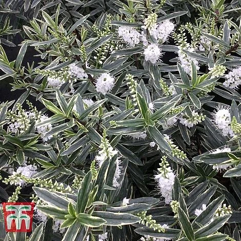 Hebe ‘Starlight’ will dazzle you with its stunning good looks! In summer, the silvery-green variegated foliage shows off the gleaming white flowers to perfection. The nectar rich blooms are loved by pollinating insects and last the whole summer. This compact evergreen has a neat rounded habit that makes a well-mannered addition to the border or grown in a container as a patio plant. Height and spread: 100cm (39″).