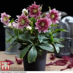 Freckled pink double blooms with elegant pointed petals make for an eye-catching show during the early season. Hellebore ‘Hello Amber’ is easy to grow and low maintenance, thriving in most conditions including sun or partial shade, but it’s happiest in a dappled shade position where it’ll blend in comfortably with a woodland-style planting scheme. Evergreen palm-shaped leaves provide texture to a planting space throughout the year, also acting as a compact ground cover. Produces multiple blooms from January onwards which not only act as a highlight in the spring garden, they’re also a valuable source of nectar for bumblebees. Height: 35cm (14″). Spread: 35cm (14″).