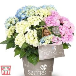 This amazing new tricolour variety is bound to turn heads! Hydrangea macrophylla ‘Three Sisters Pastel’ blooms in three perfectly harmonious shades all in one neat and compact plant, meaning you can enjoy an easy and low maintenance varied display even where space is limited. An excellent choice for growing in pots where it can be shown off on the patio when its looking its best, or for small beds in partially shaded areas. The large mophead blooms provide a bright and prolific display during summer and into autumn. Allow the flower heads to turn brown in autumn and enjoy their magical frosted charm through the winter months too. Over the years this shrub establishes into a neat, rounded shape with lush green foliage. The flower heads also make wonderful cut flowers, fresh or dried. Height: 50cm (20β). Spread: 50cm (20β).