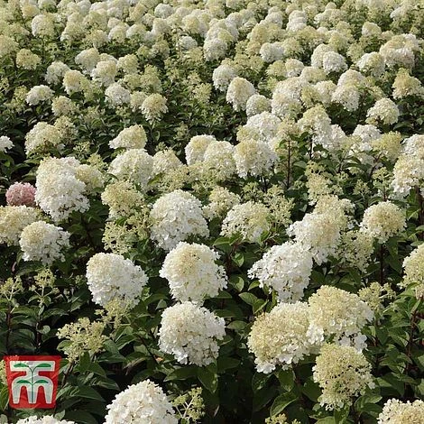 This impressive dwarf Hydrangea bears an extravagance of conical, pure white blooms in late summer. As they mature, the blooms become flushed with pale pink towards the end of the season, before the vibrant autumn foliage takes centre stage. Reaching less than 1m tall, Hydrangea paniculata ‘Bobo’ is neat and compact making it suitable for the front of borders or large patio containers. Height: 90cm (36″). Spread: 120cm (46″).