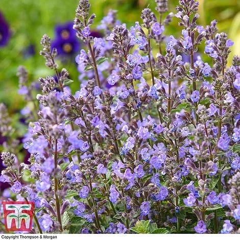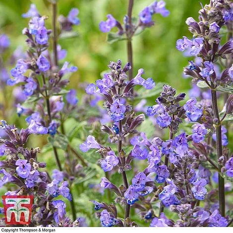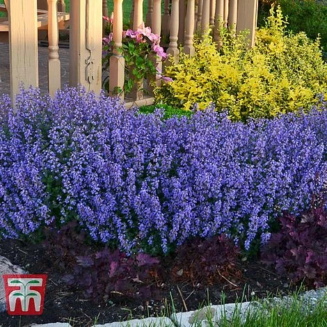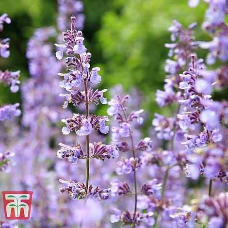 Attract bees and butterflies to your garden with this delightful, aromatic perennial, Nepeta faassenii ‘Purrsian Blueβ. Vigorous and easy to grow, this low maintenance Catmint forms a bushy dome of mint-scented grey-green foliage which is topped with masses of mauve-blue flower clusters from summer into autumn each year. The nectar-rich blooms of Nepeta are a honeypot for pollinators; coupled with soft, informal looks, this it the ideal choice for a sunny border in wildlife or cottage gardens. Height: 45cm (18β). Spread: 60cm (24β).