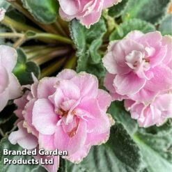 Flowering all year round, Saintpaulia ‘EK-Vrata Raia’ boasts large, luxurious, ruffled double blooms in a soft pale pink. African Violets make great shade-tolerant houseplants, with exotic-looking flowers produced throughout the year in a wide array of vibrant shades, rising above thick, furry green leaves. Height: 20cm (8in). Spread: 20-30cm (8-12in).