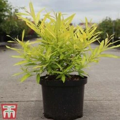 Salix udensis ‘Golden Sunshine’ is a natural yellow-leaved mutation of the species, found in Japan in 2005. This attractive, vigorous willow forms an erect, deciduous, hardy shrub. In early spring, small, pale, silver-yellow catkins show before leaves emerge. The lance shaped leaves appear chartreuse green in spring which turn a brighter yellow during the autumn prior to falling. This Japanese Fantail Willow makes a handsome large shrub for the back of sunny borders. Height: 4m (13′). Spread: 3m (9′).